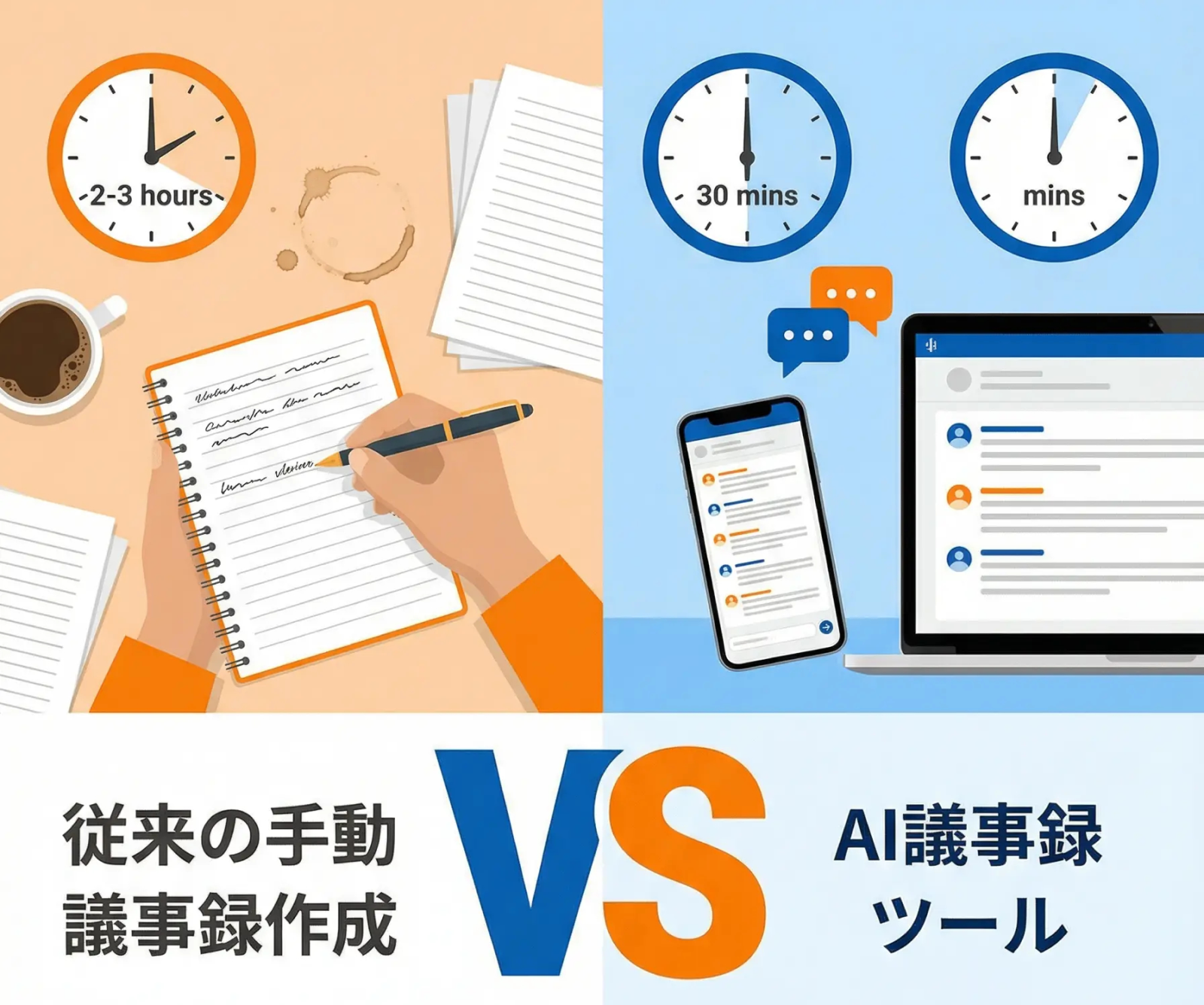 従来の議事録作成では、1時間の会議に対して2~3時間の事後作業が必要でした。会議中のメモ取り、録音データの聞き直し、テキストの整形・編集を手作業で行うため、本来業務を圧pok圧迫する大きな負担となっていたのです。