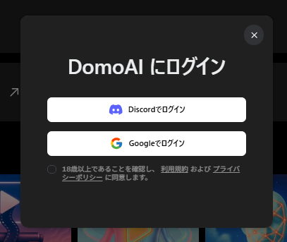 DomoAI公式サイト(https://www.domoai.app/ja)にアクセスし、Googleアカウントでログインします。