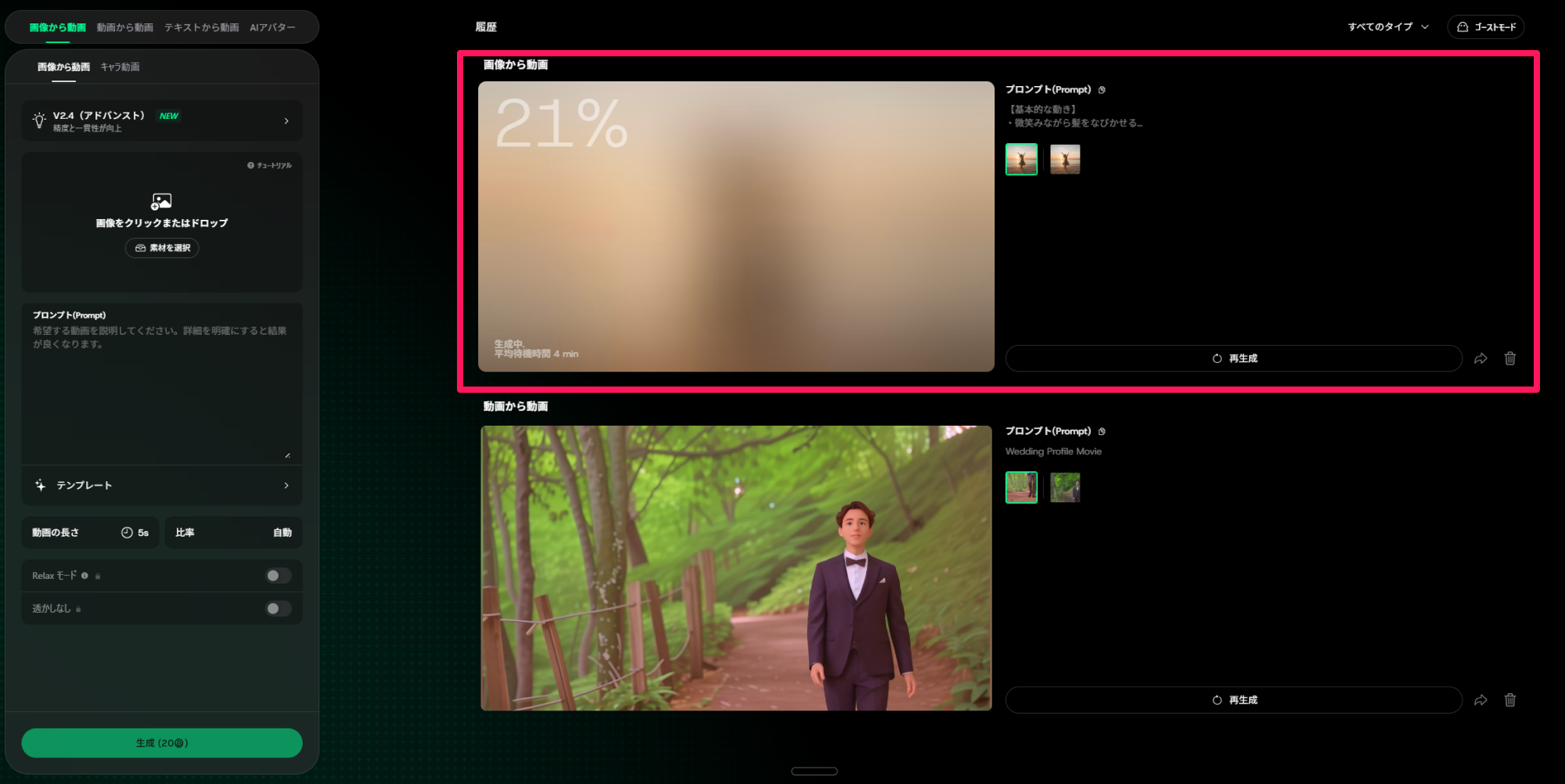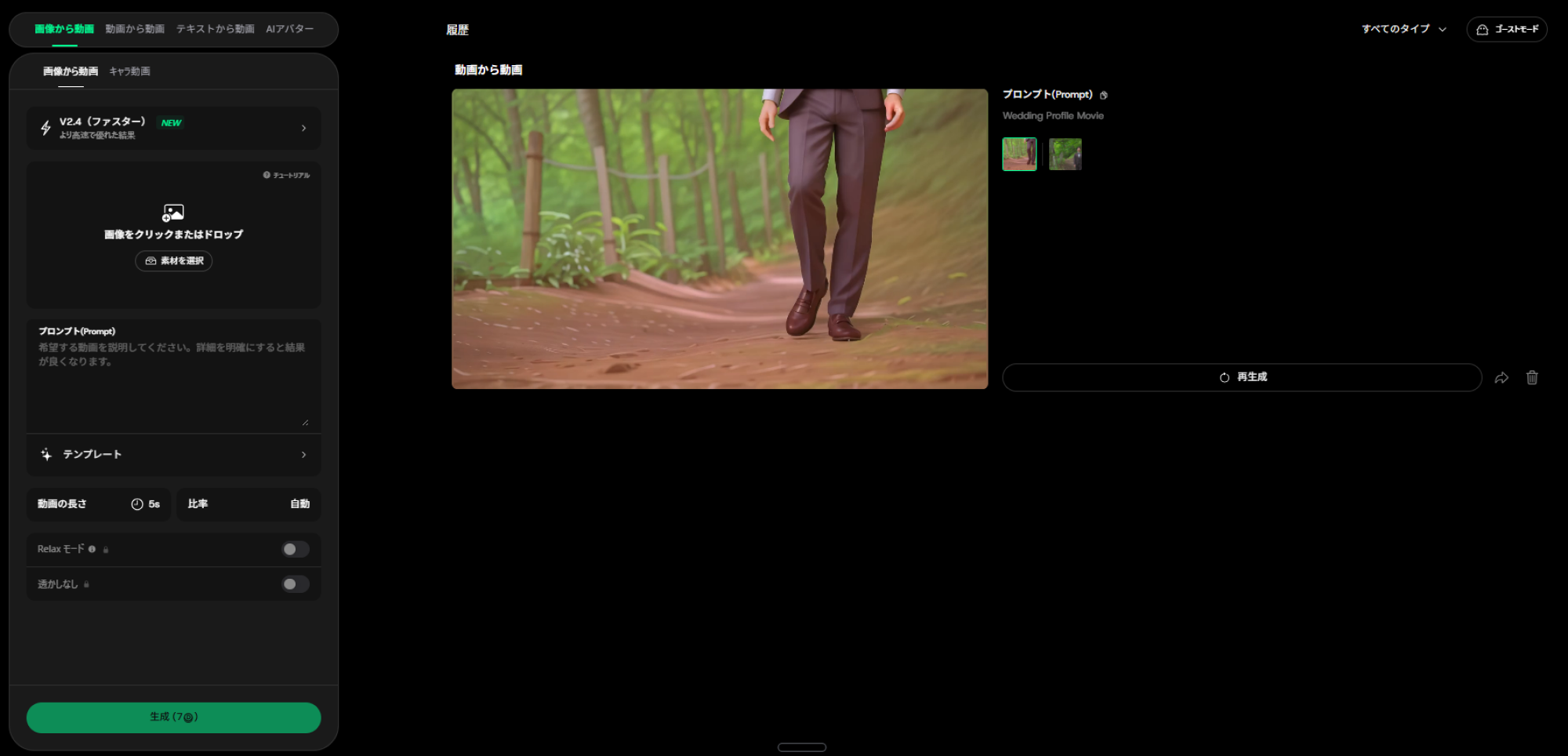 - 生成速度の短縮:約1分半〜2分で5秒動画が完成