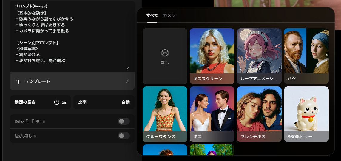 他社の動画生成AIでは、生成ごとにクレジットを消費しますが、DomoAIのRelaxモードなら、待機時間が少し長くなる代わりに無制限に動画を生成可能。大量にコンテンツを作りたいクリエイターにとって、これは圧倒的なアドバンテージです。