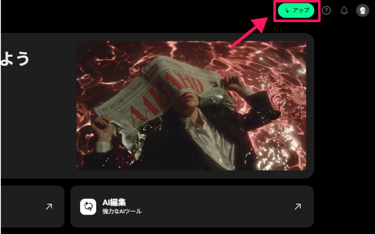 画面右上の「アップ」ボタンをクリックし、料金プランを表示します。