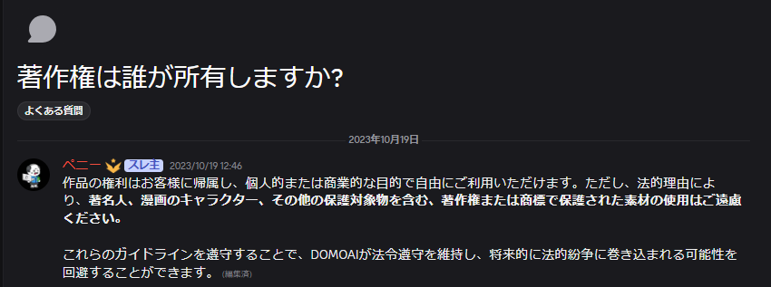 DomoAIで生成されたコンテンツの所有権は利用者に帰属し、商用利用も認められています。