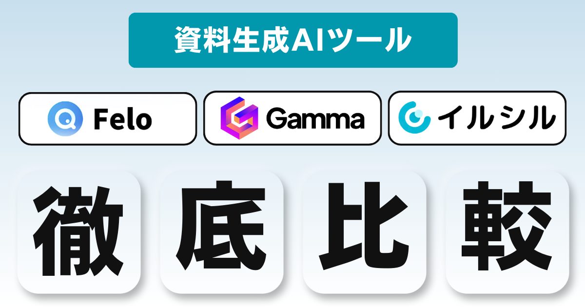 この記事では、人気のスライド生成ツール「Felo」「Gamma」「イルシル」を徹底的に比較し、それぞれの特徴や料金プラン、利用シーンに応じた最適な選び方を解説します。