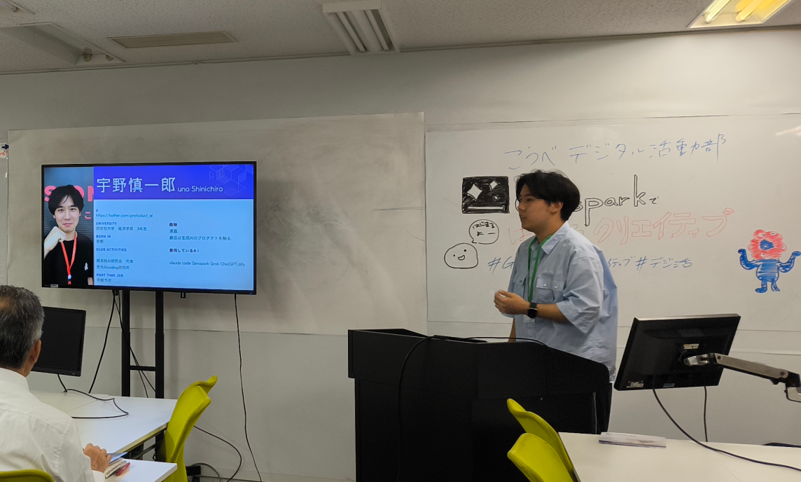 こうべデジタル活動部は、神戸市が主催する学生向けデジタル人材育成プロジェクト。毎月異なるテーマで、最新のAIツールや技術に触れる機会を提供しています。