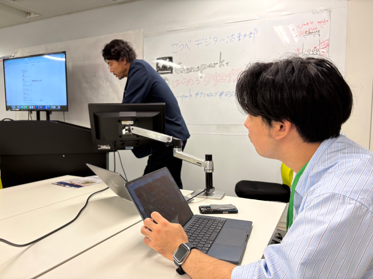 そんな参加者たちが、最新AIツール「Genspark」に触れ、わずか2時間で画像や動画を生成。会場には「えっ、もうできた!」という驚きの声が飛び交いました。