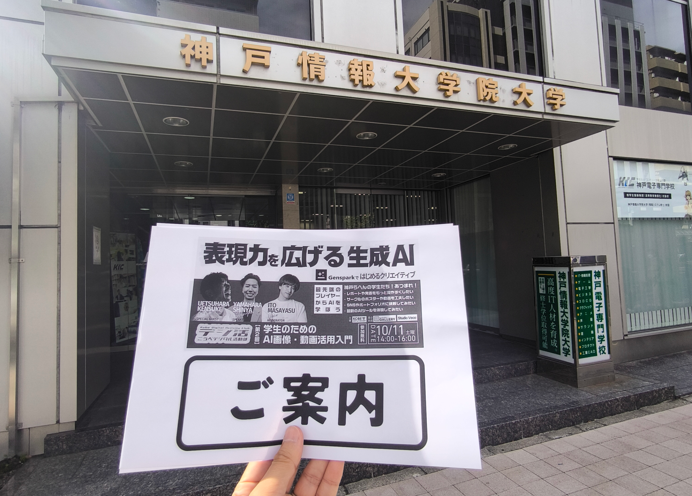 2025年10月8日(土)、神戸情報大学院大学で開催された「こうべデジタル活動部」10月イベント。テーマは「表現力を広げる生成AI ― 学生のための画像・動画活用入門」。