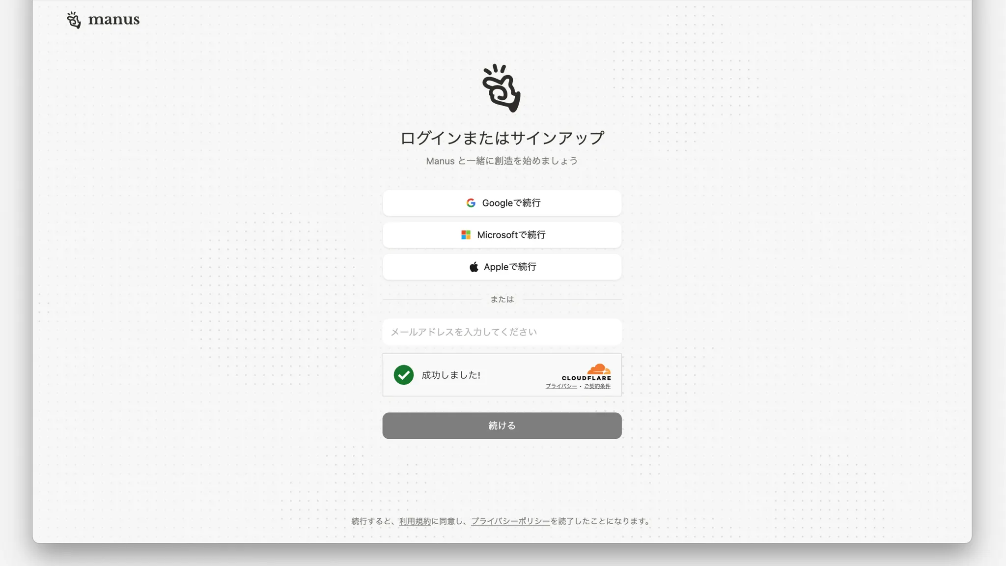 Manusは、Googleアカウントがあれば誰でも簡単に無料登録できます。無料プランでも毎日付与されるクレジットの範囲内で、数枚のスライドを生成できます。