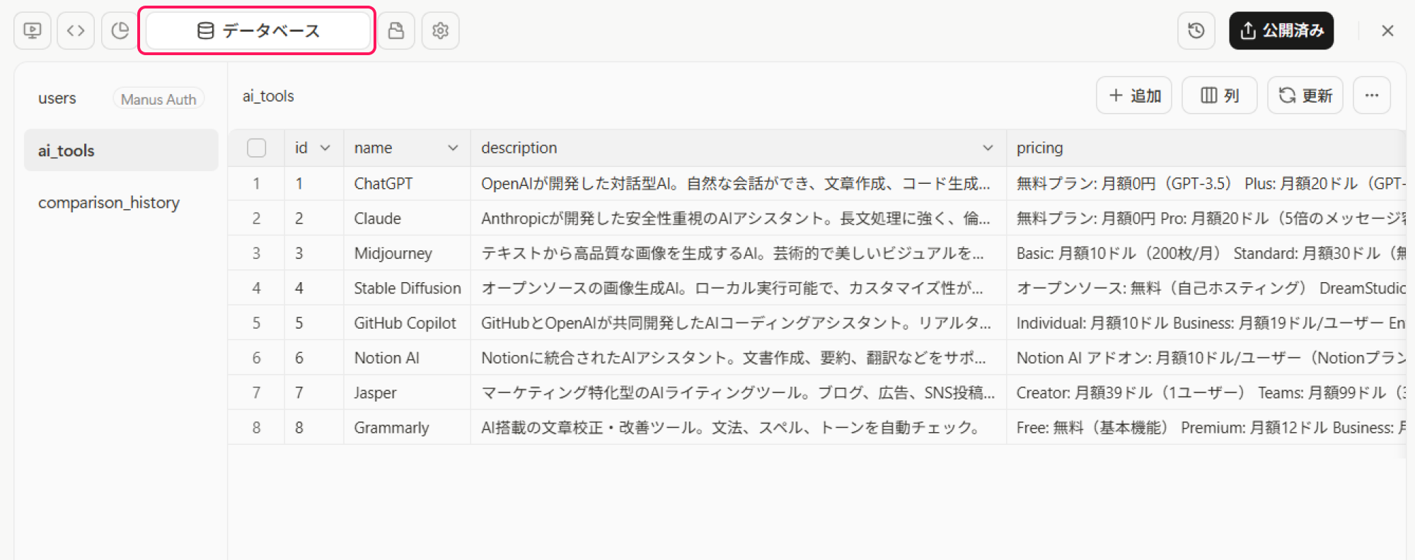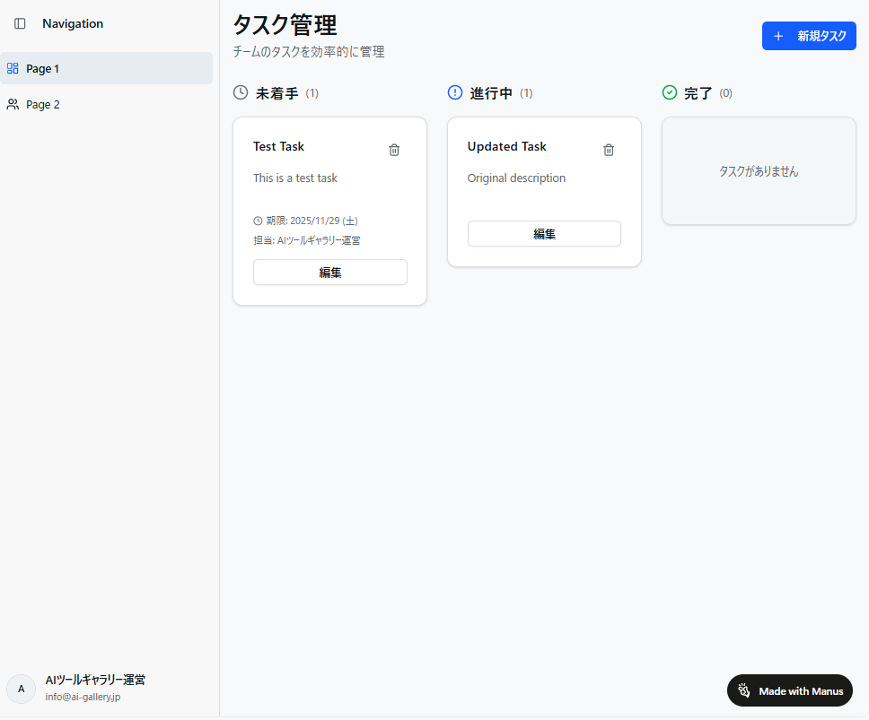 もちろん、こだわりのデザインや大規模なシステムを目指すなら追加の調整は必要ですが、「まず動くものを素早く作る」という点において、Manusの実力は本物だと言えます。