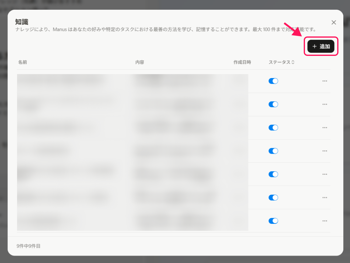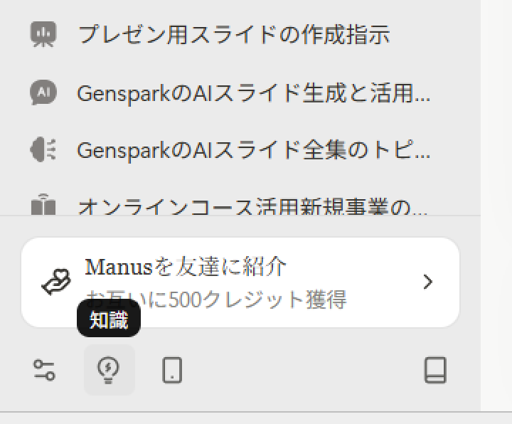 Manusのナレッジ機能を使えば、一度登録したガイドラインを今後のすべてのプロジェクトで自動的に参照できます。AIエージェントが適切なタイミングでこの知識を呼び出し、著作権に配慮した実装を行います。