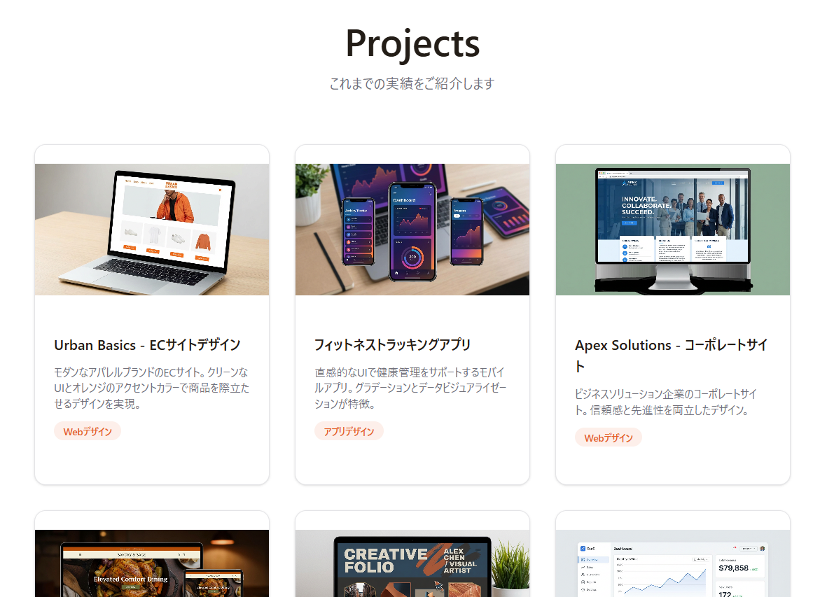 実際にユーザーが作成している例としては、サービス紹介LP、ポートフォリオサイト、社内向け業務ツール、簡易ECサイトなどがあります。特に「作るのは簡単だけど、自分でやると面倒」な実用系のサイトに強みを発揮します。小規模なWebアプリであれば、認証機能やデータベースまで含めて実用レベルのものが作れてしまいます。