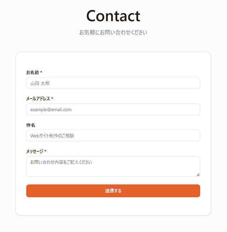 | ポートフォリオサイト | 自己紹介、実績一覧、問い合わせフォーム | 約2~5分 |