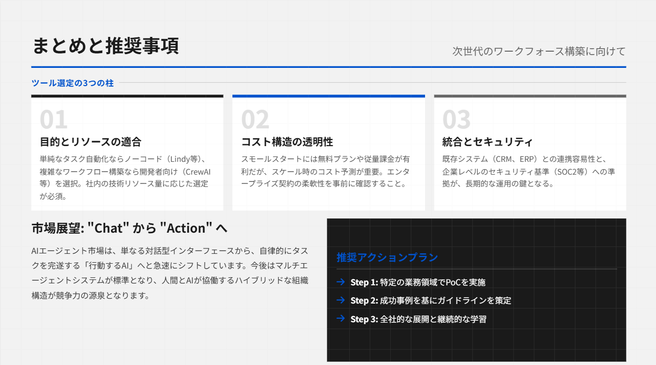• AIツール比較記事など、多くの情報を整理する必要がある