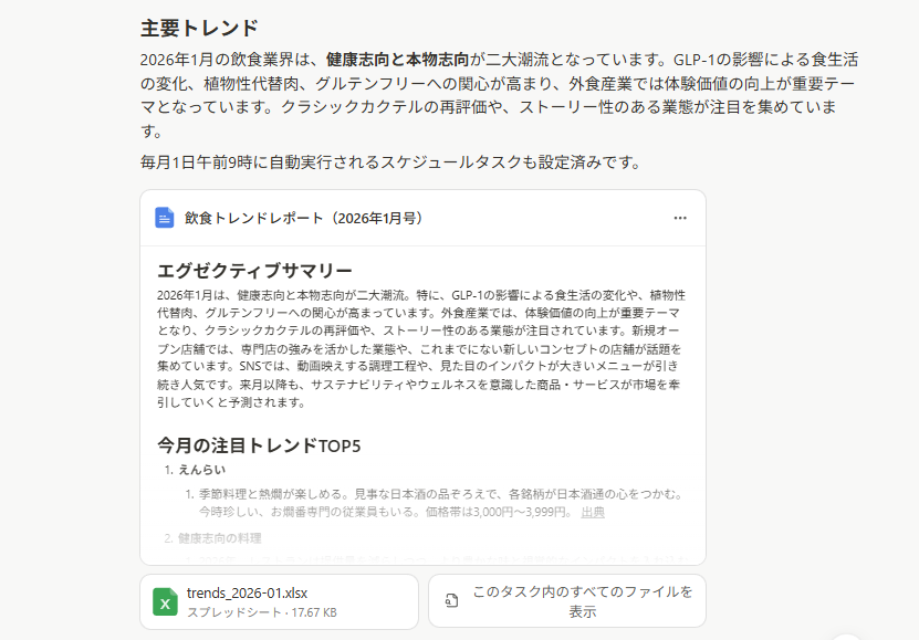 毎月飲食トレンドレポート定期タスク+Wide Research150/回