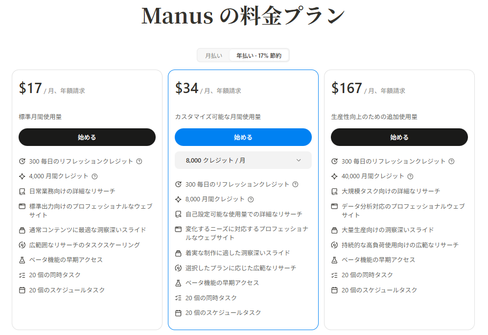 Manusの概要・登録手順・料金プランの詳細はManusの使い方・始め方ガイドで解説しています。