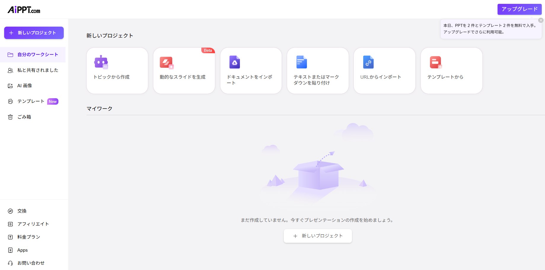 AiPPTは、AIによる自動構成・デザイン生成と豊富なテンプレートにより、プレゼン資料作成の時間を大幅に短縮できるツールです。無料プランで基本機能を試せるため、まずは実際に使って操作感を確かめてみるのがおすすめです。