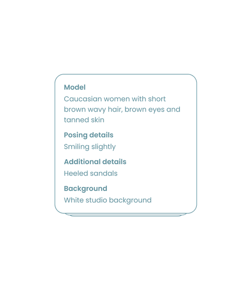 - モデルの特徴: 例: 「ショートカットで茶髪、褐色肌の女性」