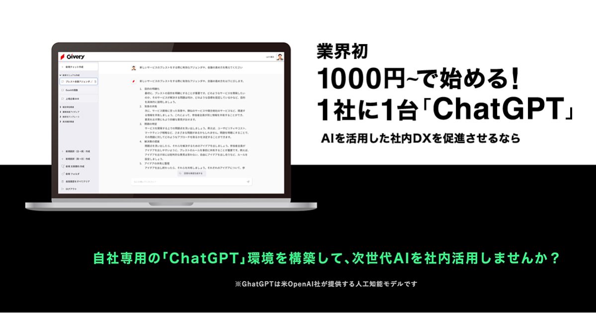 自社専用の「ChatGPT」環境を構築して、社内DXを促進できるAIサービス。